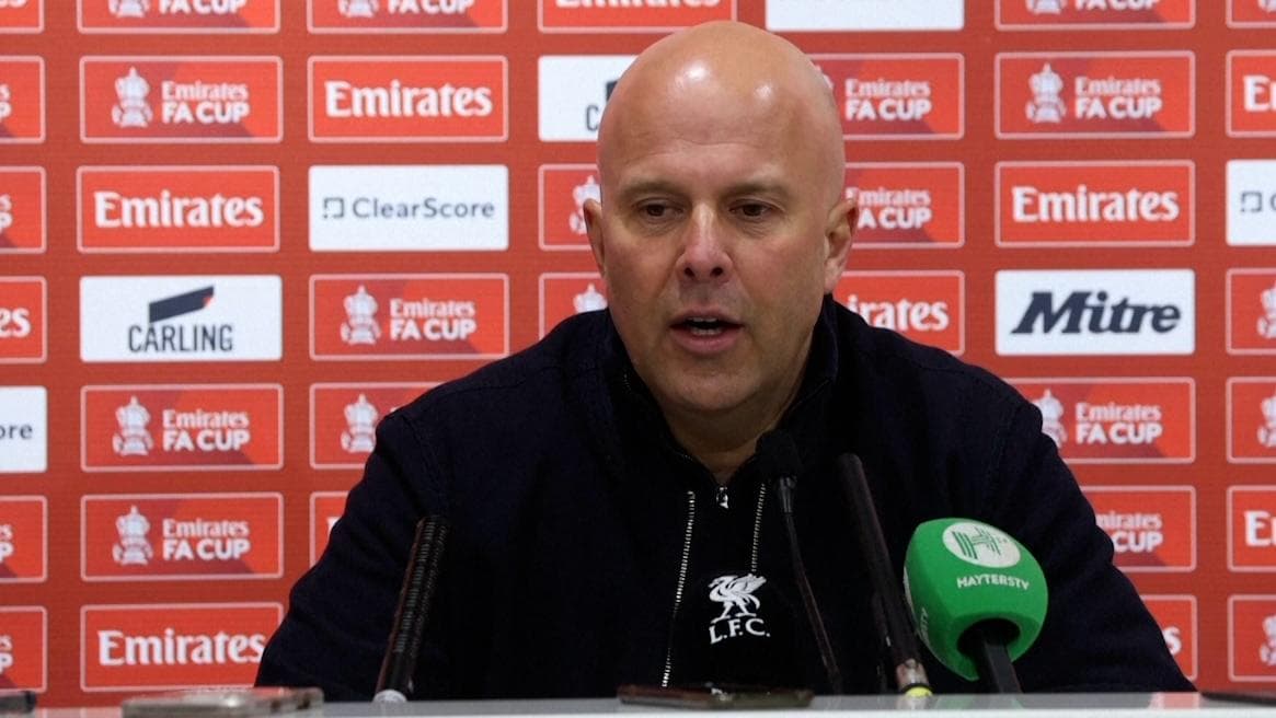 Arne Slot reacts to his sides FA Cup victory over Wolves following their Premier League defeat to them earlier in the week.