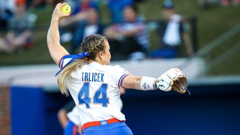 Rylee Trlicek throws a shutout, only giving up two hits, while the Gators rack up 11 hits to top the Dolphins, 11-0.