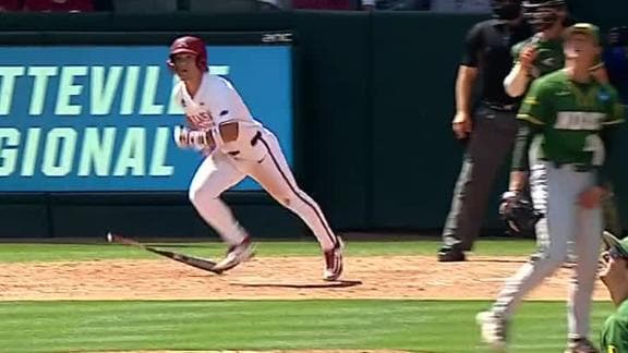 Cam Kozeal gives Arkansas a 6-2 lead over North Dakota State with a two-run shot in the fifth inning.