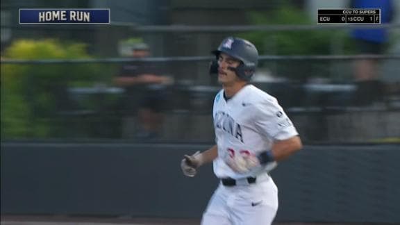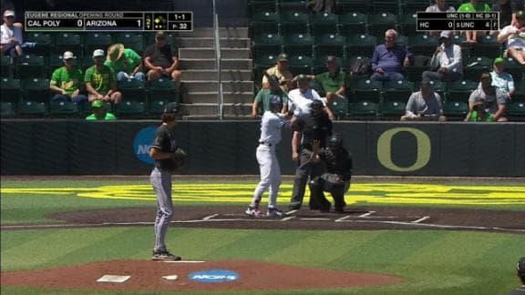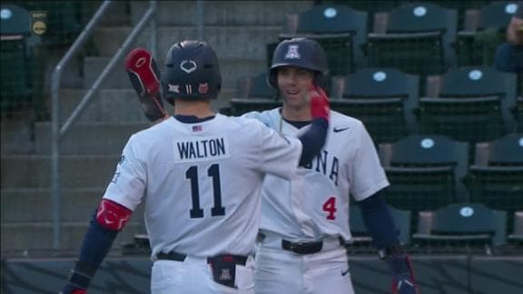 Easton Breyfogle crushes a 2-run homer over the right-field wall to pad Arizona's lead over Cal Poly.