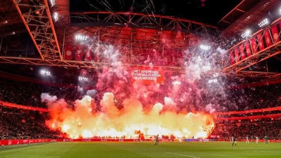 Ajax vs. FC Groningen in the Eredivisie is abandoned after fireworks and flares are lit in the home end.